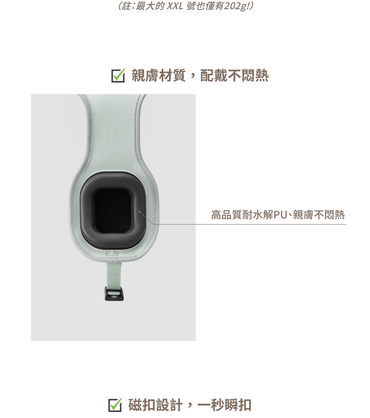 ● 磁吸扣環的安全警示,若毛孩體內植入電子醫療設備(如心律調節器),請保持適當距離或諮詢寵物醫師。