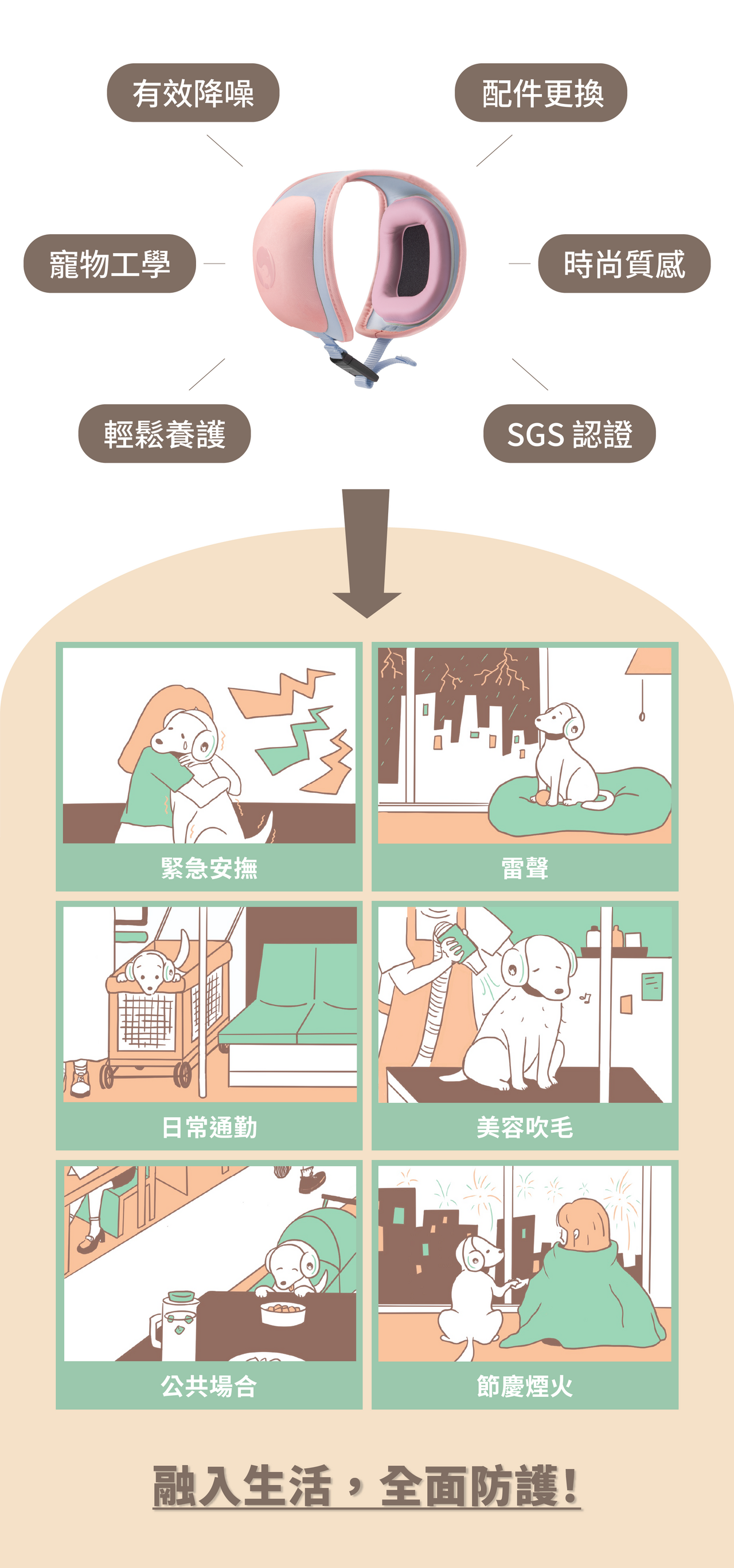 ●  建議在安靜、安全之環境中,先讓毛孩逐步適應,再於實際吵雜情境中使用。